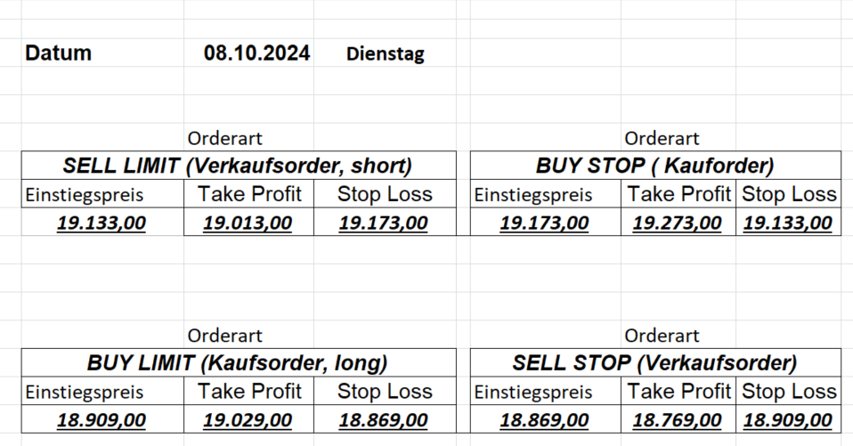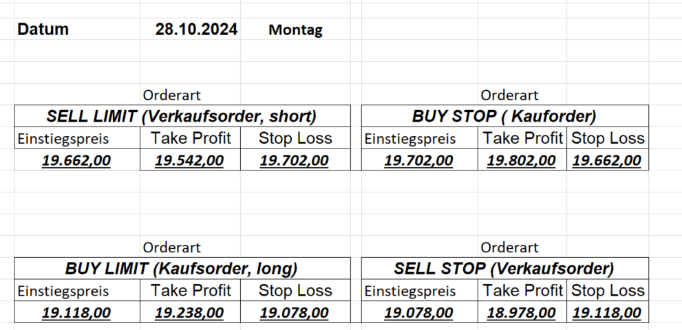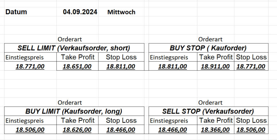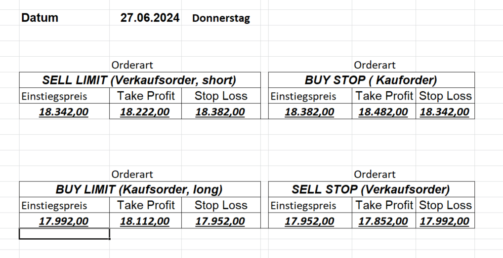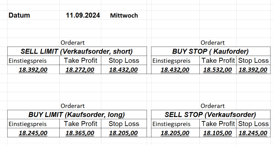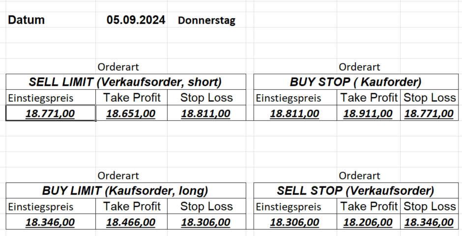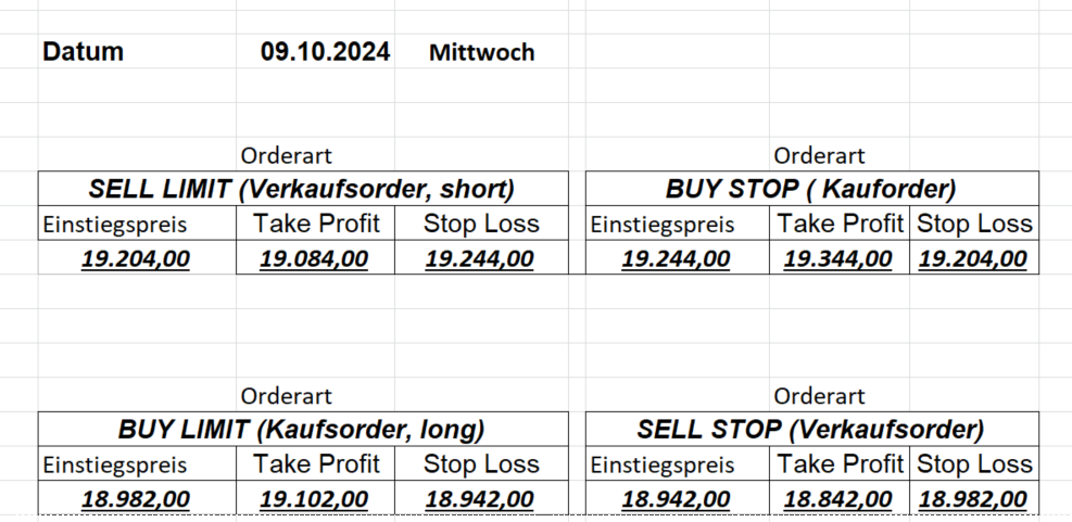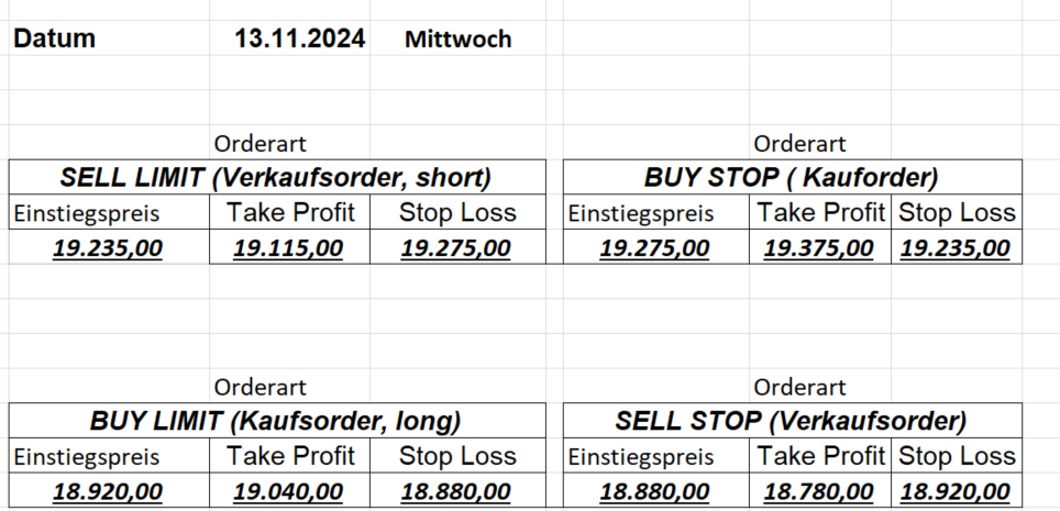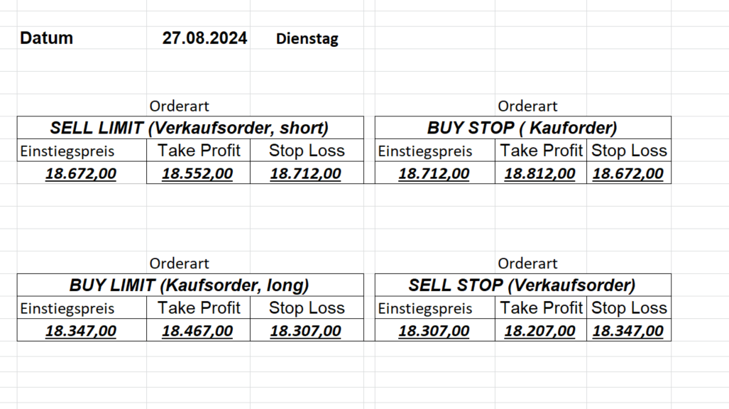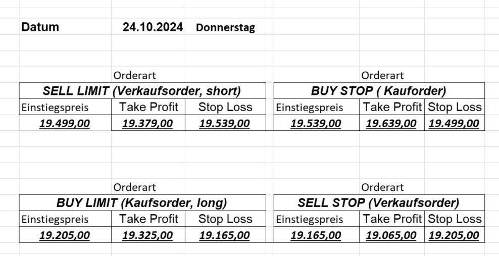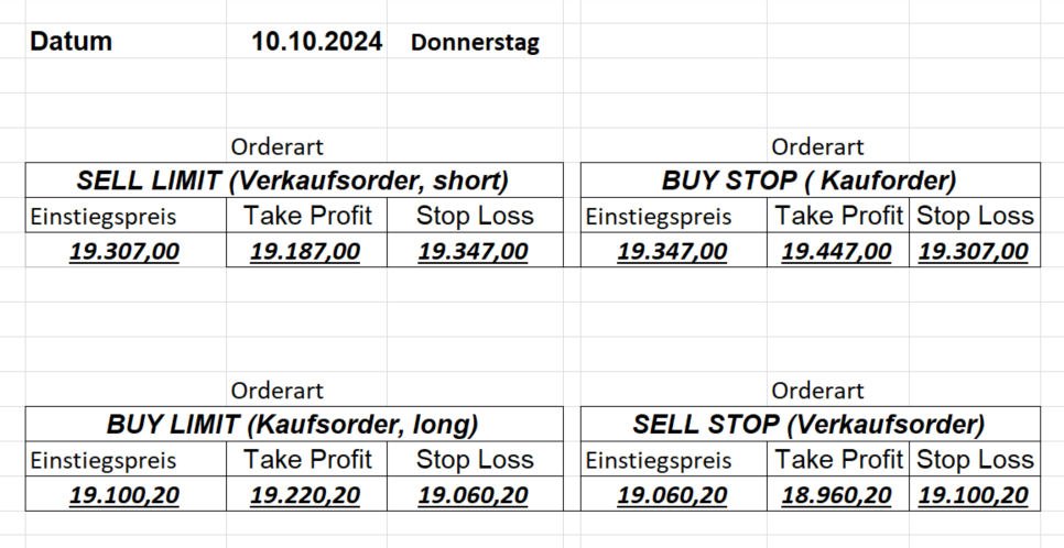 16.8.2024 Platzieren Sie die  Order bis 9:00 Löschen Sie bitte offene Order und Positionen um 21:45 ! Zur Frage der Punktgröße: Beispielrechnung: Bitte immer kurz auf den am weitest entfernten Stopp schauen. Diese Punktzahl sollte nicht mehr als 0,5% bis 1% des Kapitals ausmachen. 15.8.2024 Platzieren Sie die  Order bis 9:00 Löschen Sie bitte offene Order und Positionen um 21:45 ! Zur Frage der Punktgröße: Beispielrechnung: Bitte immer kurz auf den am weitest entfernten Stopp schauen. Diese Punktzahl sollte nicht mehr als 0,5% bis 1% des Kapitals ausmachen. 14.8.2024 Platzieren Sie die  Order bis 9:00 Löschen Sie bitte offene Order und Positionen um 21:45 ! Zur Frage der Punktgröße: Beispielrechnung: Bitte immer kurz auf den am weitest entfernten Stopp schauen. Diese Punktzahl sollte nicht mehr als 0,5% bis 1% des Kapitals ausmachen. 13.8.2024 Platzieren Sie die  Order bis 9:00 Löschen Sie bitte offene Order und Positionen um 21:45 ! Zur Frage der Punktgröße: Beispielrechnung: Bitte immer kurz auf den am weitest entfernten Stopp schauen. Diese Punktzahl sollte nicht mehr als 0,5% bis 1% des Kapitals ausmachen. 12.8.2024 Platzieren Sie die  Order bis 9:00 Löschen Sie bitte offene Order und Positionen um 21:45 ! Zur Frage der Punktgröße: Beispielrechnung: Bitte immer kurz auf den am weitest entfernten Stopp schauen. Diese Punktzahl sollte nicht mehr als 0,5% bis 1% des Kapitals ausmachen. 9.8.2024 Platzieren Sie die  Order bis 9:00 Löschen Sie bitte offene Order und Positionen um 21:45 ! Zur Frage der Punktgröße: Beispielrechnung: Bitte immer kurz auf den am weitest entfernten Stopp schauen. Diese Punktzahl sollte nicht mehr als 0,5% bis 1% des Kapitals ausmachen. 8.8.2024 Platzieren Sie die  Order bis 9:00 Löschen Sie bitte offene Order und Positionen um 21:45 ! Zur Frage der Punktgröße: Beispielrechnung: Bitte immer kurz auf den am weitest entfernten Stopp schauen. Diese Punktzahl sollte nicht mehr als 0,5% bis 1% des Kapitals ausmachen. 7.8.2024 Platzieren Sie die  Order bis 9:00 Löschen Sie bitte offene Order und Positionen um 21:45 ! Zur Frage der Punktgröße: Beispielrechnung: Bitte immer kurz auf den am weitest entfernten Stopp schauen. Diese Punktzahl sollte nicht mehr als 0,5% bis 1% des Kapitals ausmachen. 6.8.2024  Platzieren Sie die  Order bis 9:00 Löschen Sie bitte offene Order und Positionen um 21:45 ! Zur Frage der Punktgröße: Beispielrechnung: Bitte immer kurz auf den am weitest entfernten Stopp schauen. Diese Punktzahl sollte nicht mehr als 0,5% bis 1% des Kapitals ausmachen. 5.8.2024 Heute bleiben wir an der Seitenlinie. Gap Down von über 200 Punkten! 2.8.2024  Platzieren Sie die  Order bis 9:00 Löschen Sie bitte offene Order und Positionen um 21:45 ! Zur Frage der Punktgröße: Beispielrechnung: Bitte immer kurz auf den am weitest entfernten Stopp schauen. Diese Punktzahl sollte nicht mehr als 0,5% bis 1% des Kapitals ausmachen. 1.8.2024  Platzieren Sie die  Order bis 9:00 Löschen Sie bitte offene Order und Positionen um 21:45 ! Zur Frage der Punktgröße: Beispielrechnung: Bitte immer kurz auf den am weitest entfernten Stopp schauen. Diese Punktzahl sollte nicht mehr als 0,5% bis 1% des Kapitals ausmachen. 31.7.2024  Platzieren Sie die  Order bis 9:00 Löschen Sie bitte offene Order und Positionen um 21:45 ! Zur Frage der Punktgröße: Beispielrechnung: Bitte immer kurz auf den am weitest entfernten Stopp schauen. Diese Punktzahl sollte nicht mehr als 0,5% bis 1% des Kapitals ausmachen. 30.7.2024  Platzieren Sie die  Order bis 9:00 Löschen Sie bitte offene Order und Positionen um 21:45 ! Zur Frage der Punktgröße: Beispielrechnung: Bitte immer kurz auf den am weitest entfernten Stopp schauen. Diese Punktzahl sollte nicht mehr als 0,5% bis 1% des Kapitals ausmachen. 29.7.2024  Platzieren Sie die  Order bis 9:00 Löschen Sie bitte offene Order und Positionen um 21:45 ! Zur Frage der Punktgröße: Beispielrechnung: Bitte immer kurz auf den am weitest entfernten Stopp schauen. Diese Punktzahl sollte nicht mehr als 0,5% bis 1% des Kapitals ausmachen. Neues Allzeithoch im Depot:  26.7.2024  Platzieren Sie die  Order bis 9:00 Löschen Sie bitte offene Order und Positionen um 21:45 ! Zur Frage der Punktgröße: Beispielrechnung: Bitte immer kurz auf den am weitest entfernten Stopp schauen. Diese Punktzahl sollte nicht mehr als 0,5% bis 1% des Kapitals ausmachen. 25.7.2024  Platzieren Sie die  Order bis 9:00 Löschen Sie bitte offene Order und Positionen um 21:45 ! Zur Frage der Punktgröße: Beispielrechnung: Bitte immer kurz auf den am weitest entfernten Stopp schauen. Diese Punktzahl sollte nicht mehr als 0,5% bis 1% des Kapitals ausmachen. 24.7.2024 Platzieren Sie die  Order bis 9:00 Löschen Sie bitte offene Order und Positionen um 21:45 ! Zur Frage der Punktgröße: Beispielrechnung: Bitte immer kurz auf den am weitest entfernten Stopp schauen. Diese Punktzahl sollte nicht mehr als 0,5% bis 1% des Kapitals ausmachen. 23.7.2024 Platzieren Sie die  Order bis 9:00 Löschen Sie bitte offene Order und Positionen um 21:45 ! Zur Frage der Punktgröße: Beispielrechnung: Bitte immer kurz auf den am weitest entfernten Stopp schauen. Diese Punktzahl sollte nicht mehr als 0,5% bis 1% des Kapitals ausmachen. 22.7.2024 Heute bleiben wir an der Seitenlinie! Morgen geht es normal weiter!  19.7.2024 Platzieren Sie die  Order bis 9:00 Löschen Sie bitte offene Order und Positionen um 21:45 ! Zur Frage der Punktgröße: Beispielrechnung: Bitte immer kurz auf den am weitest entfernten Stopp schauen. Diese Punktzahl sollte nicht mehr als 0,5% bis 1% des Kapitals ausmachen. 18.7.2024 Aufgrund der heutigen EZB-Sitzung bleiben wir an der Seitenlinie!  17.7.2024 Platzieren Sie die  Order bis 9:00 Löschen Sie bitte offene Order und Positionen um 21:45 ! Zur Frage der Punktgröße: Beispielrechnung: Bitte immer kurz auf den am weitest entfernten Stopp schauen. Diese Punktzahl sollte nicht mehr als