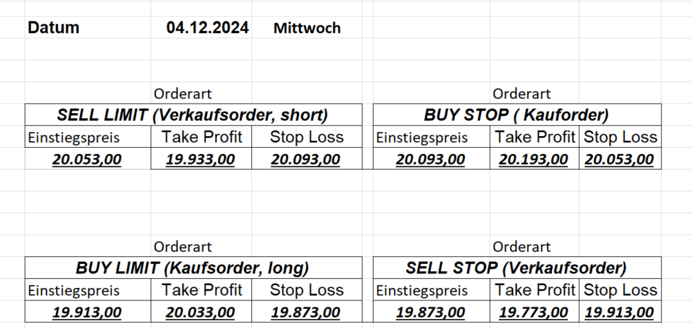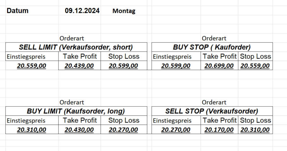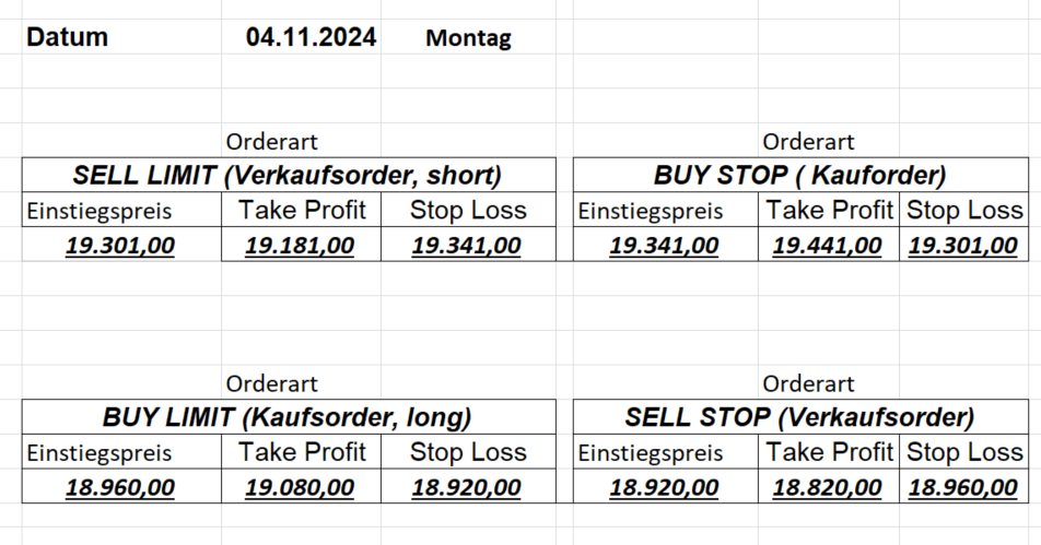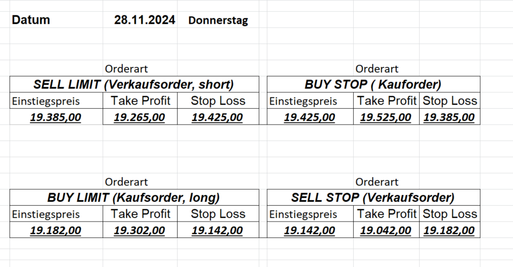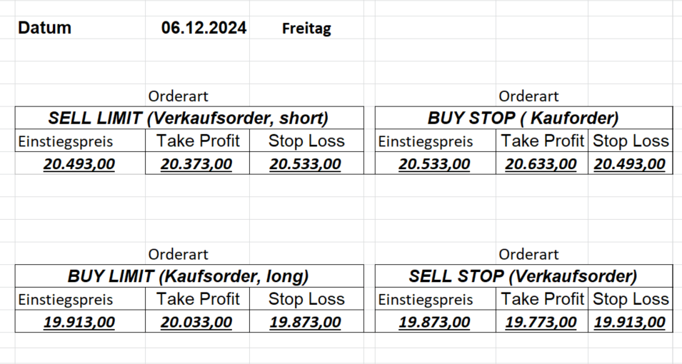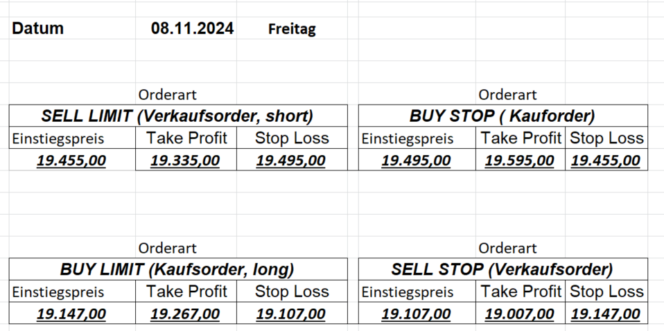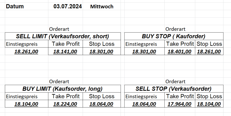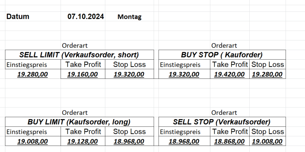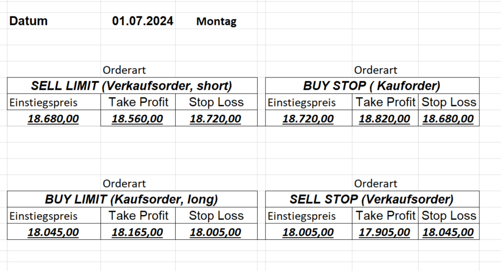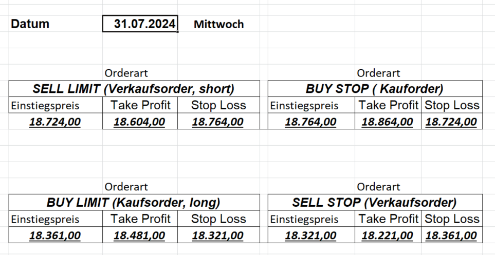 16.8.2024 Platzieren Sie die  Order bis 9:00 Löschen Sie bitte offene Order und Positionen um 21:45 ! Zur Frage der Punktgröße: Beispielrechnung: Bitte immer kurz auf den am weitest entfernten Stopp schauen. Diese Punktzahl sollte nicht mehr als 0,5% bis 1% des Kapitals ausmachen. 15.8.2024 Platzieren Sie die  Order bis 9:00 Löschen Sie bitte offene Order und Positionen um 21:45 ! Zur Frage der Punktgröße: Beispielrechnung: Bitte immer kurz auf den am weitest entfernten Stopp schauen. Diese Punktzahl sollte nicht mehr als 0,5% bis 1% des Kapitals ausmachen. 14.8.2024 Platzieren Sie die  Order bis 9:00 Löschen Sie bitte offene Order und Positionen um 21:45 ! Zur Frage der Punktgröße: Beispielrechnung: Bitte immer kurz auf den am weitest entfernten Stopp schauen. Diese Punktzahl sollte nicht mehr als 0,5% bis 1% des Kapitals ausmachen. 13.8.2024 Platzieren Sie die  Order bis 9:00 Löschen Sie bitte offene Order und Positionen um 21:45 ! Zur Frage der Punktgröße: Beispielrechnung: Bitte immer kurz auf den am weitest entfernten Stopp schauen. Diese Punktzahl sollte nicht mehr als 0,5% bis 1% des Kapitals ausmachen. 12.8.2024 Platzieren Sie die  Order bis 9:00 Löschen Sie bitte offene Order und Positionen um 21:45 ! Zur Frage der Punktgröße: Beispielrechnung: Bitte immer kurz auf den am weitest entfernten Stopp schauen. Diese Punktzahl sollte nicht mehr als 0,5% bis 1% des Kapitals ausmachen. 9.8.2024 Platzieren Sie die  Order bis 9:00 Löschen Sie bitte offene Order und Positionen um 21:45 ! Zur Frage der Punktgröße: Beispielrechnung: Bitte immer kurz auf den am weitest entfernten Stopp schauen. Diese Punktzahl sollte nicht mehr als 0,5% bis 1% des Kapitals ausmachen. 8.8.2024 Platzieren Sie die  Order bis 9:00 Löschen Sie bitte offene Order und Positionen um 21:45 ! Zur Frage der Punktgröße: Beispielrechnung: Bitte immer kurz auf den am weitest entfernten Stopp schauen. Diese Punktzahl sollte nicht mehr als 0,5% bis 1% des Kapitals ausmachen. 7.8.2024 Platzieren Sie die  Order bis 9:00 Löschen Sie bitte offene Order und Positionen um 21:45 ! Zur Frage der Punktgröße: Beispielrechnung: Bitte immer kurz auf den am weitest entfernten Stopp schauen. Diese Punktzahl sollte nicht mehr als 0,5% bis 1% des Kapitals ausmachen. 6.8.2024  Platzieren Sie die  Order bis 9:00 Löschen Sie bitte offene Order und Positionen um 21:45 ! Zur Frage der Punktgröße: Beispielrechnung: Bitte immer kurz auf den am weitest entfernten Stopp schauen. Diese Punktzahl sollte nicht mehr als 0,5% bis 1% des Kapitals ausmachen. 5.8.2024 Heute bleiben wir an der Seitenlinie. Gap Down von über 200 Punkten! 2.8.2024  Platzieren Sie die  Order bis 9:00 Löschen Sie bitte offene Order und Positionen um 21:45 ! Zur Frage der Punktgröße: Beispielrechnung: Bitte immer kurz auf den am weitest entfernten Stopp schauen. Diese Punktzahl sollte nicht mehr als 0,5% bis 1% des Kapitals ausmachen. 1.8.2024  Platzieren Sie die  Order bis 9:00 Löschen Sie bitte offene Order und Positionen um 21:45 ! Zur Frage der Punktgröße: Beispielrechnung: Bitte immer kurz auf den am weitest entfernten Stopp schauen. Diese Punktzahl sollte nicht mehr als 0,5% bis 1% des Kapitals ausmachen. 31.7.2024  Platzieren Sie die  Order bis 9:00 Löschen Sie bitte offene Order und Positionen um 21:45 ! Zur Frage der Punktgröße: Beispielrechnung: Bitte immer kurz auf den am weitest entfernten Stopp schauen. Diese Punktzahl sollte nicht mehr als 0,5% bis 1% des Kapitals ausmachen. 30.7.2024  Platzieren Sie die  Order bis 9:00 Löschen Sie bitte offene Order und Positionen um 21:45 ! Zur Frage der Punktgröße: Beispielrechnung: Bitte immer kurz auf den am weitest entfernten Stopp schauen. Diese Punktzahl sollte nicht mehr als 0,5% bis 1% des Kapitals ausmachen. 29.7.2024  Platzieren Sie die  Order bis 9:00 Löschen Sie bitte offene Order und Positionen um 21:45 ! Zur Frage der Punktgröße: Beispielrechnung: Bitte immer kurz auf den am weitest entfernten Stopp schauen. Diese Punktzahl sollte nicht mehr als 0,5% bis 1% des Kapitals ausmachen. Neues Allzeithoch im Depot:  26.7.2024  Platzieren Sie die  Order bis 9:00 Löschen Sie bitte offene Order und Positionen um 21:45 ! Zur Frage der Punktgröße: Beispielrechnung: Bitte immer kurz auf den am weitest entfernten Stopp schauen. Diese Punktzahl sollte nicht mehr als 0,5% bis 1% des Kapitals ausmachen. 25.7.2024  Platzieren Sie die  Order bis 9:00 Löschen Sie bitte offene Order und Positionen um 21:45 ! Zur Frage der Punktgröße: Beispielrechnung: Bitte immer kurz auf den am weitest entfernten Stopp schauen. Diese Punktzahl sollte nicht mehr als 0,5% bis 1% des Kapitals ausmachen. 24.7.2024 Platzieren Sie die  Order bis 9:00 Löschen Sie bitte offene Order und Positionen um 21:45 ! Zur Frage der Punktgröße: Beispielrechnung: Bitte immer kurz auf den am weitest entfernten Stopp schauen. Diese Punktzahl sollte nicht mehr als 0,5% bis 1% des Kapitals ausmachen. 23.7.2024 Platzieren Sie die  Order bis 9:00 Löschen Sie bitte offene Order und Positionen um 21:45 ! Zur Frage der Punktgröße: Beispielrechnung: Bitte immer kurz auf den am weitest entfernten Stopp schauen. Diese Punktzahl sollte nicht mehr als 0,5% bis 1% des Kapitals ausmachen. 22.7.2024 Heute bleiben wir an der Seitenlinie! Morgen geht es normal weiter!  19.7.2024 Platzieren Sie die  Order bis 9:00 Löschen Sie bitte offene Order und Positionen um 21:45 ! Zur Frage der Punktgröße: Beispielrechnung: Bitte immer kurz auf den am weitest entfernten Stopp schauen. Diese Punktzahl sollte nicht mehr als 0,5% bis 1% des Kapitals ausmachen. 18.7.2024 Aufgrund der heutigen EZB-Sitzung bleiben wir an der Seitenlinie!  17.7.2024 Platzieren Sie die  Order bis 9:00 Löschen Sie bitte offene Order und Positionen um 21:45 ! Zur Frage der Punktgröße: Beispielrechnung: Bitte immer kurz auf den am weitest entfernten Stopp schauen. Diese Punktzahl sollte nicht mehr als