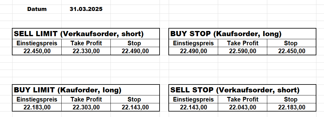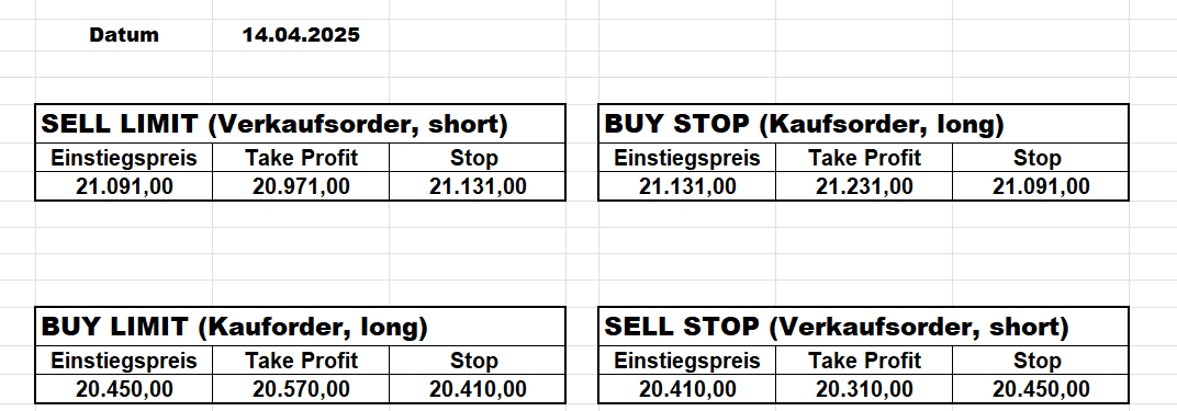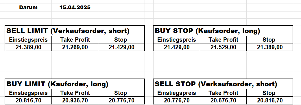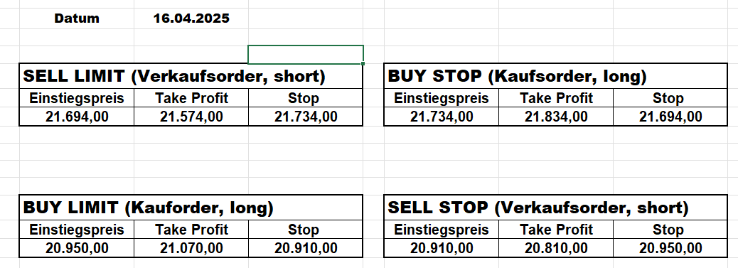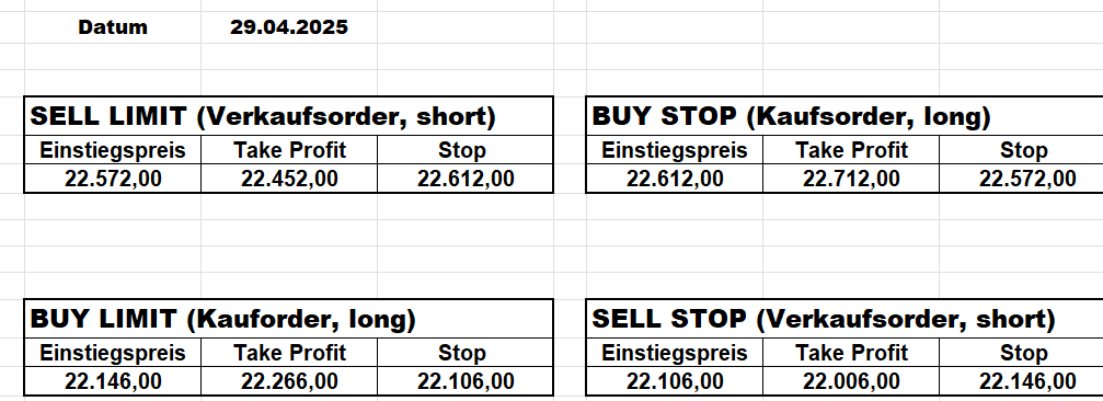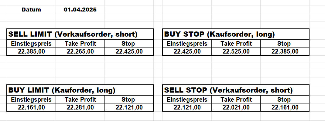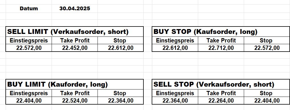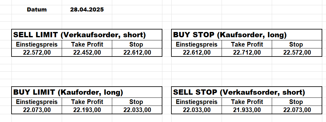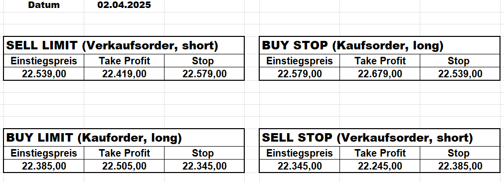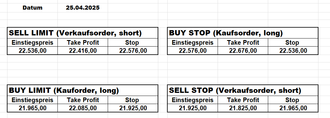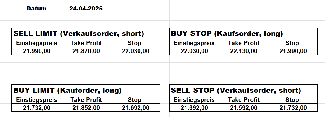 Heute bleiben wir wegen des Gaps aufgrund der Zölle an der Seitenlinie. Trump hat mal wieder „ganze Arbeit geleistet“!