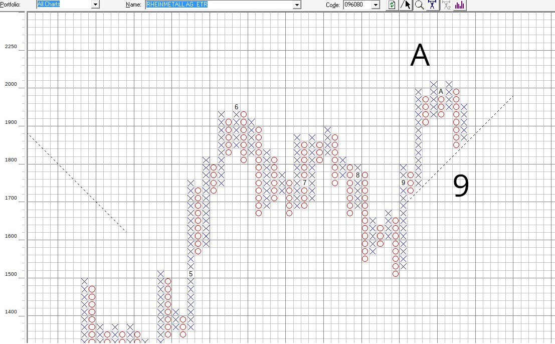 heute wird es etwas „trockener“, aber die aktuelle Point&Figure-Analyse von Rheinmetall möchte ich Ihnen nicht vorenthalten!